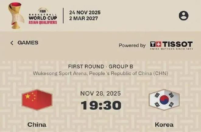 全运会结束之后,紧接着就是世预赛,中国男篮将在11月28日主场(五棵松体育馆)迎战韩国男篮,12月1日客场与韩国男篮展开二番战。